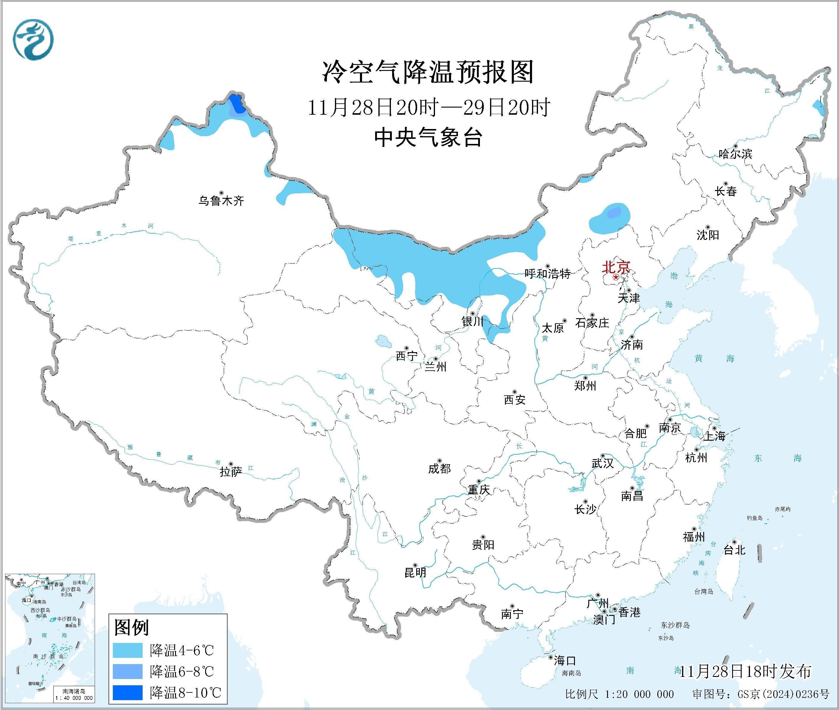 冷空气降温预报图。图/中央气象台